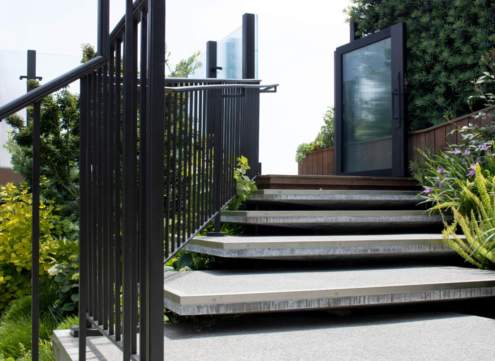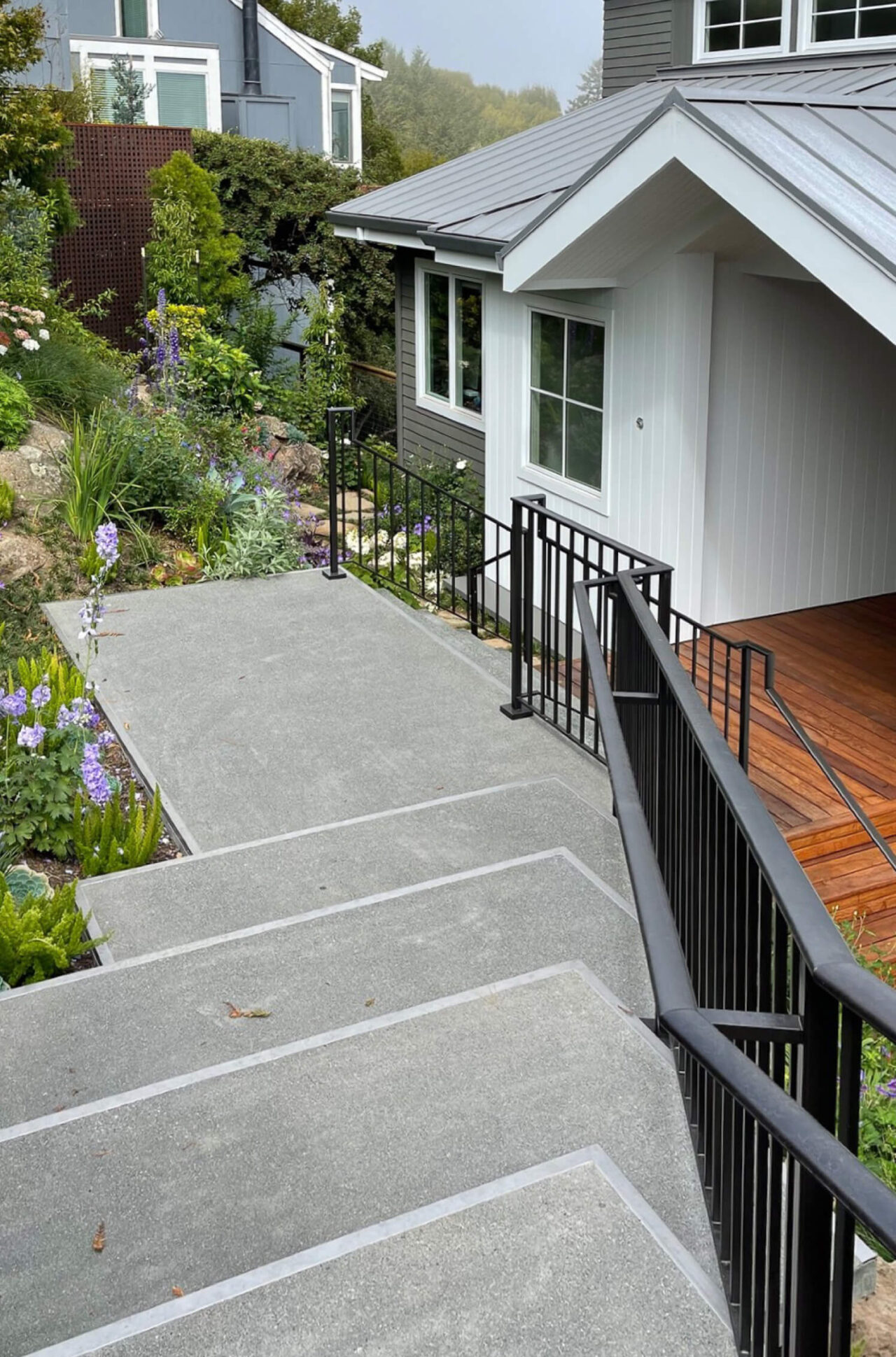 - Cantilevered concrete pathway pads ingeniously placed to look as if floating on the hillside
